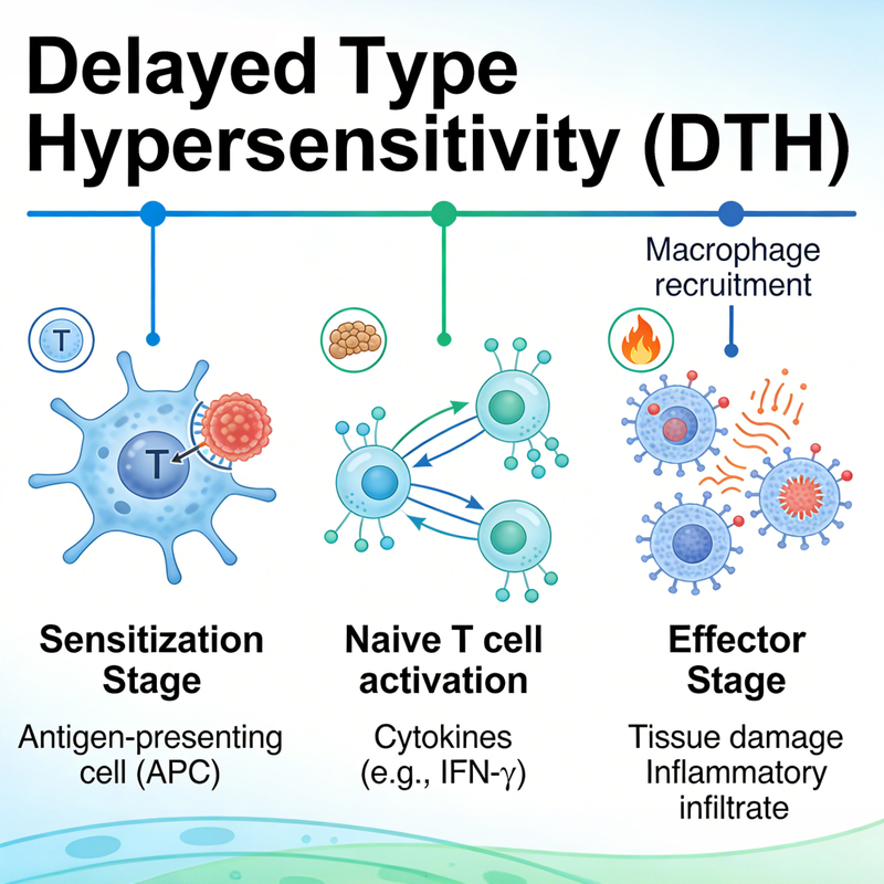 临床相关 – 概括人类 DTH 反应与 T 细胞介导的炎症、Th1 细胞因子谱和局部肿胀。